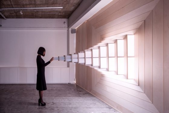 窓を「室内側に広げる」ことで、縁側のような中間領域を生み出し、窓の新しい可能性を考えたプロジェクト。壁と同化した小さな穴に指をかけ引っ張り出すと、風と光が滑らかに室内に伸びていきます。窓をたくさん重ね、極限まで小さくなっていく様子が蟻地獄のようなので、「Bottmless Window」と名付けられたそうです。
